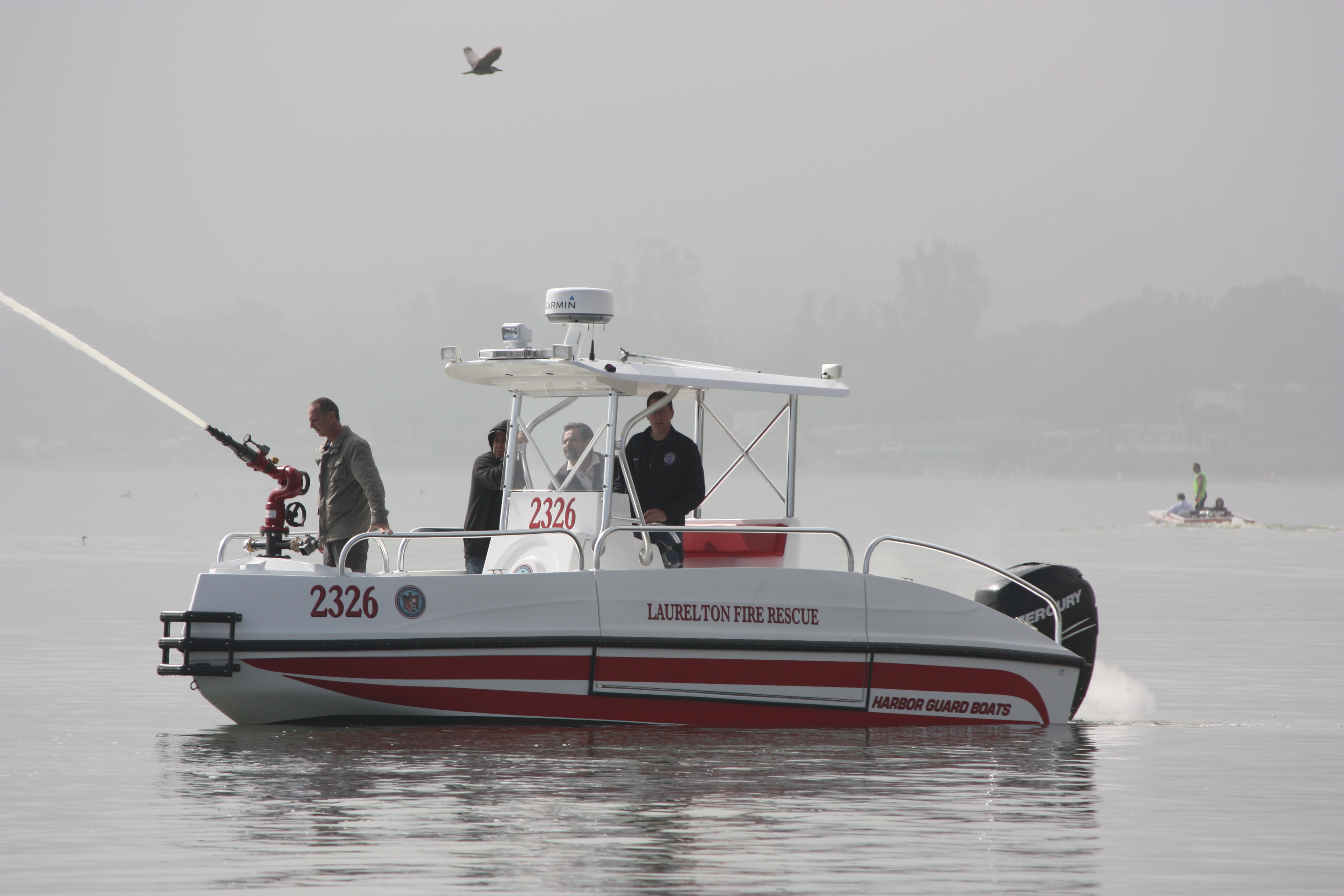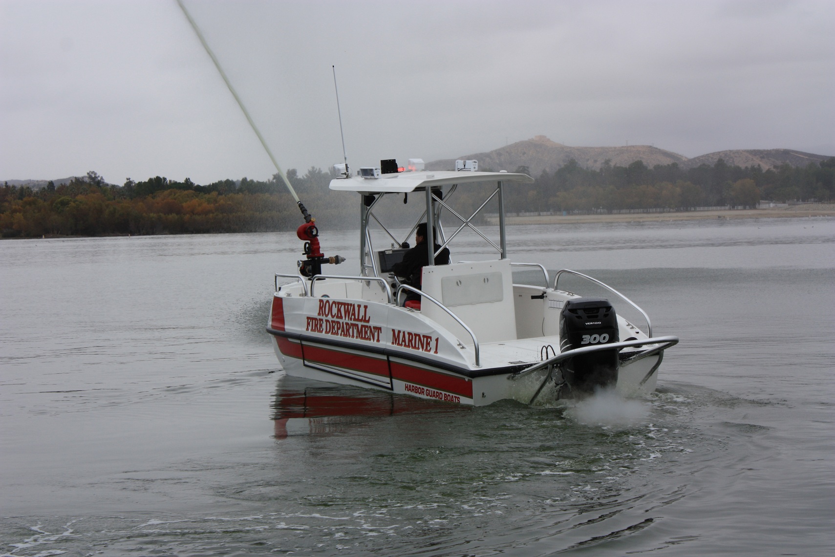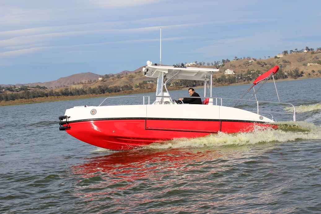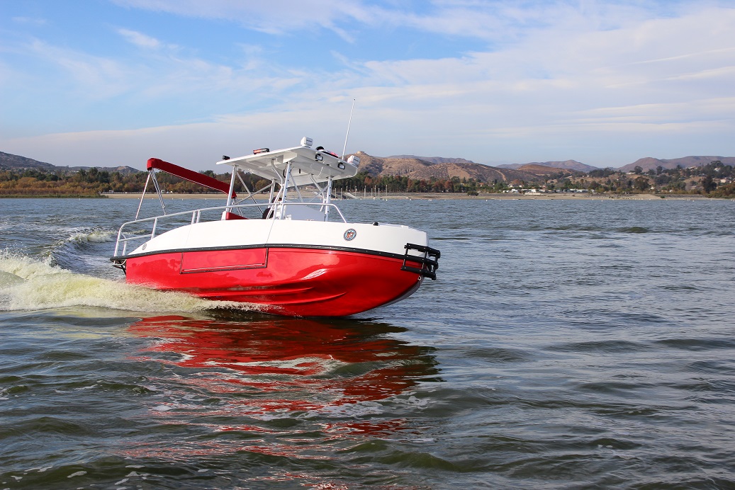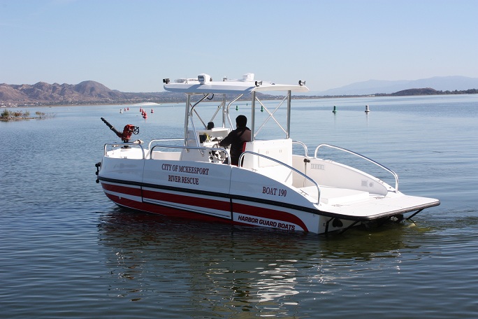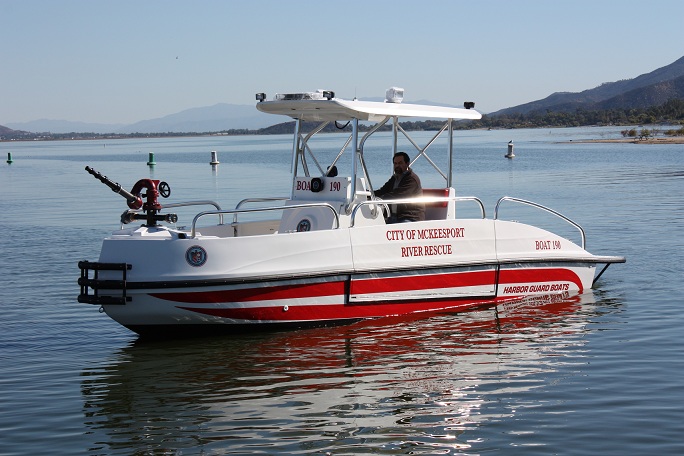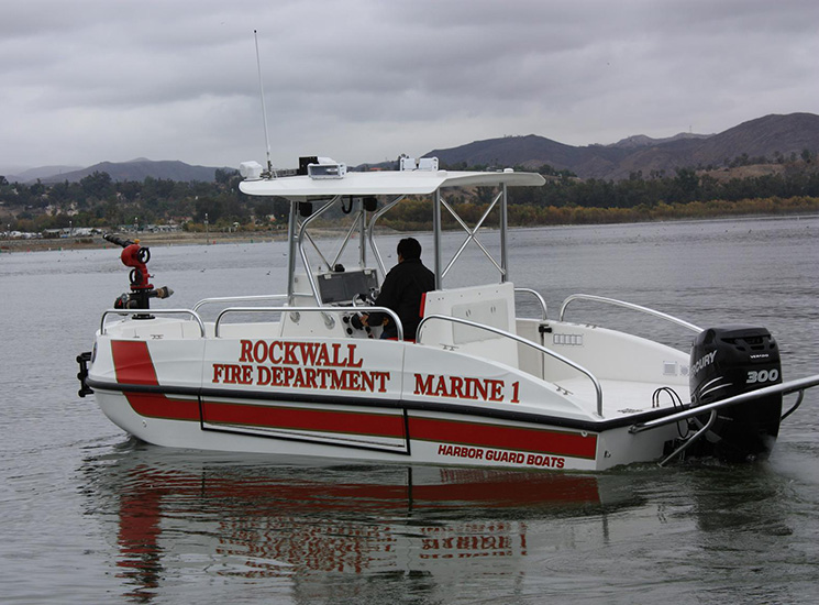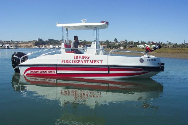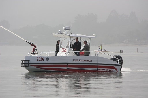 The FIREHAWK (Fire model) also provides a 1500 GPM jet fire pump and bow mounted fire monitor for fire suppression (water and foam) and "pump out" capabilities. The below deck fire pump is directly plumbed through the keel. The pump is always primed and can supply water with a turn of a key.