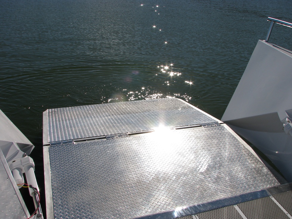 The bow ramp provides a flat waterline platform for dive and rescue and recovery missions as well as loading access from land.