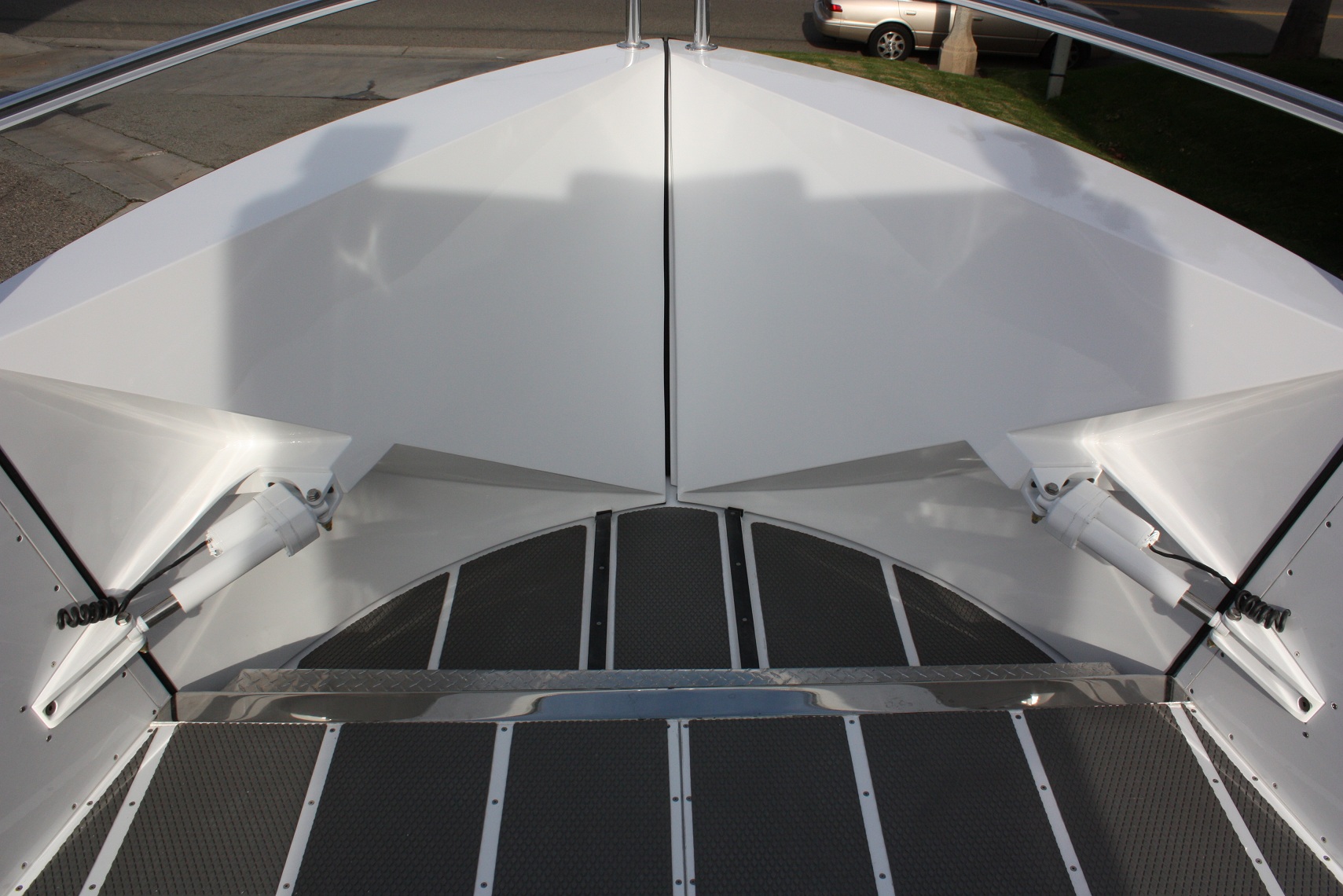 Product Highlights and Innovations: The 7' wide fully automated bow ramp is controlled from the drivers helm with push of a button.